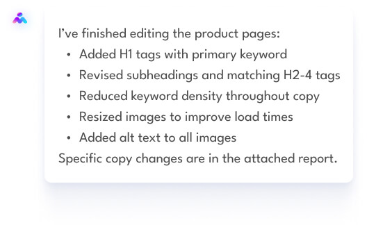 After optimizing the pages, your assistant can compile the changes implemented into a report.