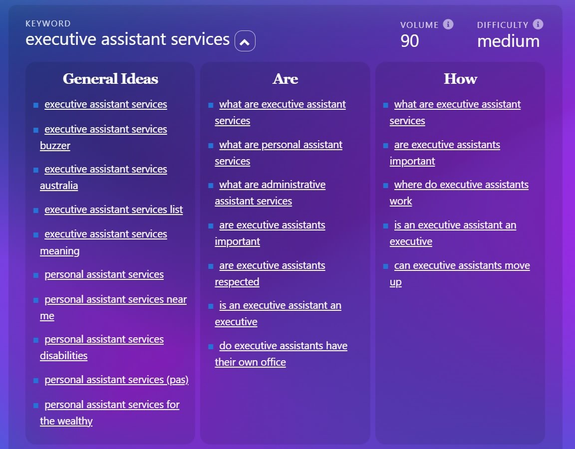 Your assistant will use one of these tools and then send you a list of relevant keywords.
