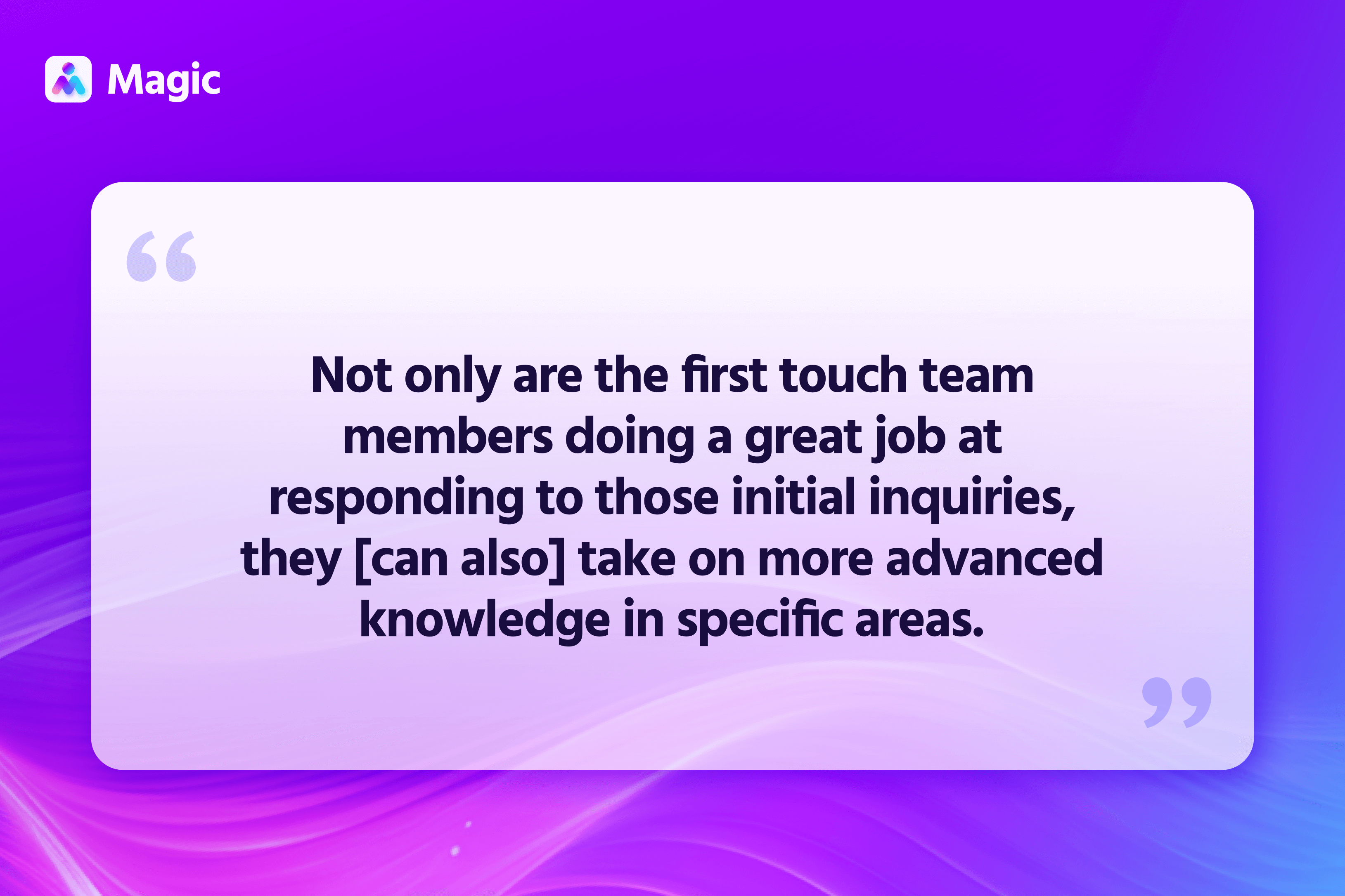 That’s where Magic came in. Executive assistants from Magic were brought on to provide initial responses and address simple queries on their own. This covered anything that could be resolved within five minutes. By doing so, they freed up the core team to focus on complex investigations.