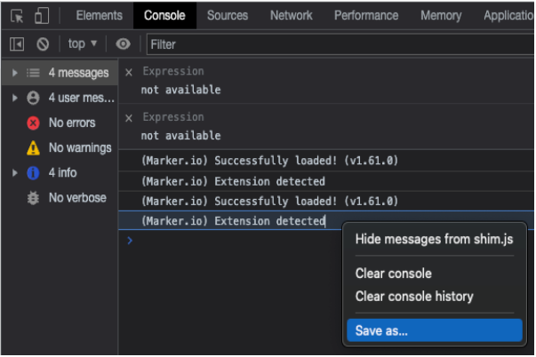 Step 3. Next, click on the Console tab. You may then grab a screencap, or save it as a file by clicking on the log area. Right-click and click Save as as .LOG file (Text Document)