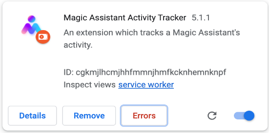 Step 5. Check to see if the Magic Workspace extension displays the Errors button and then click on it