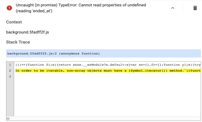 Step 6. The error details on the extension will be displayed