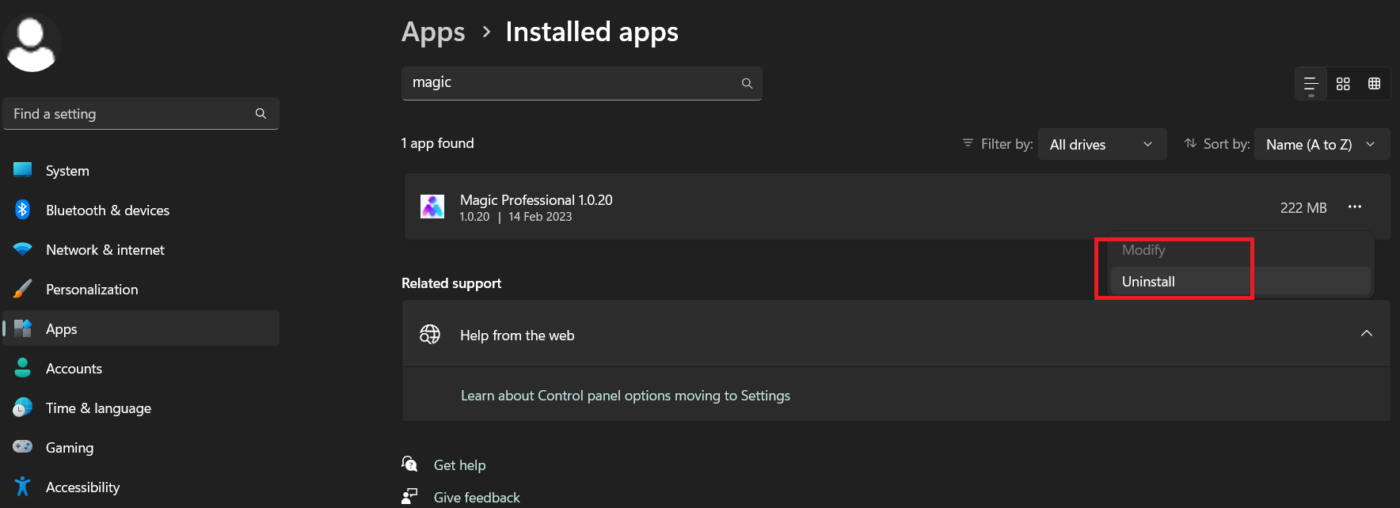 Step 5. Click on Uninstall