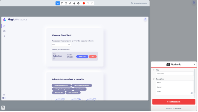 How to report an issue to an engineer via Marker.io? You need to be logged in to your Assistant Workspace dashboard