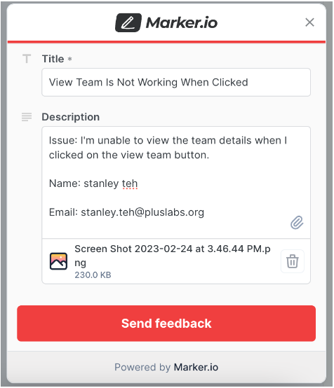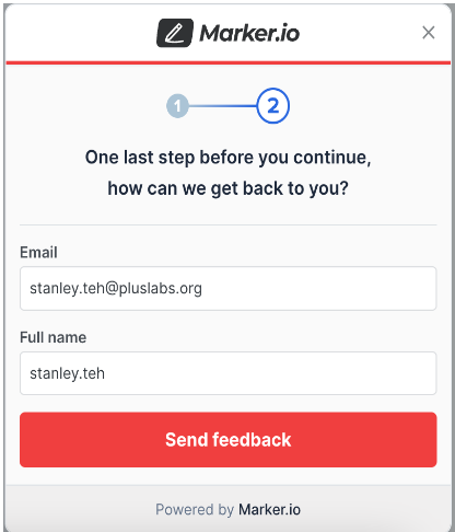 Step 7. To submit, click on the Send Feedback button, and provide your email address and full name on the succeeding dialog.