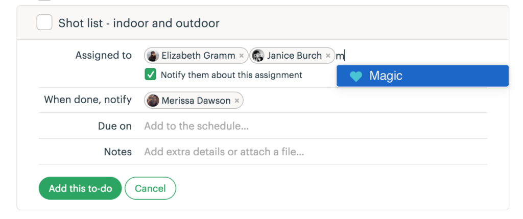 Assigning to-dos to Magic works exactly the same as assigning to-dos to any other team member in Basecamp.